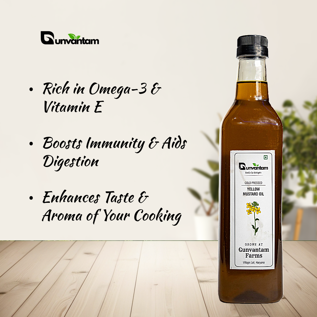 Upgrade your kitchen and health with Gunvantam Farms Cold-Pressed Yellow Mustard Oil – where tradition meets wellness!