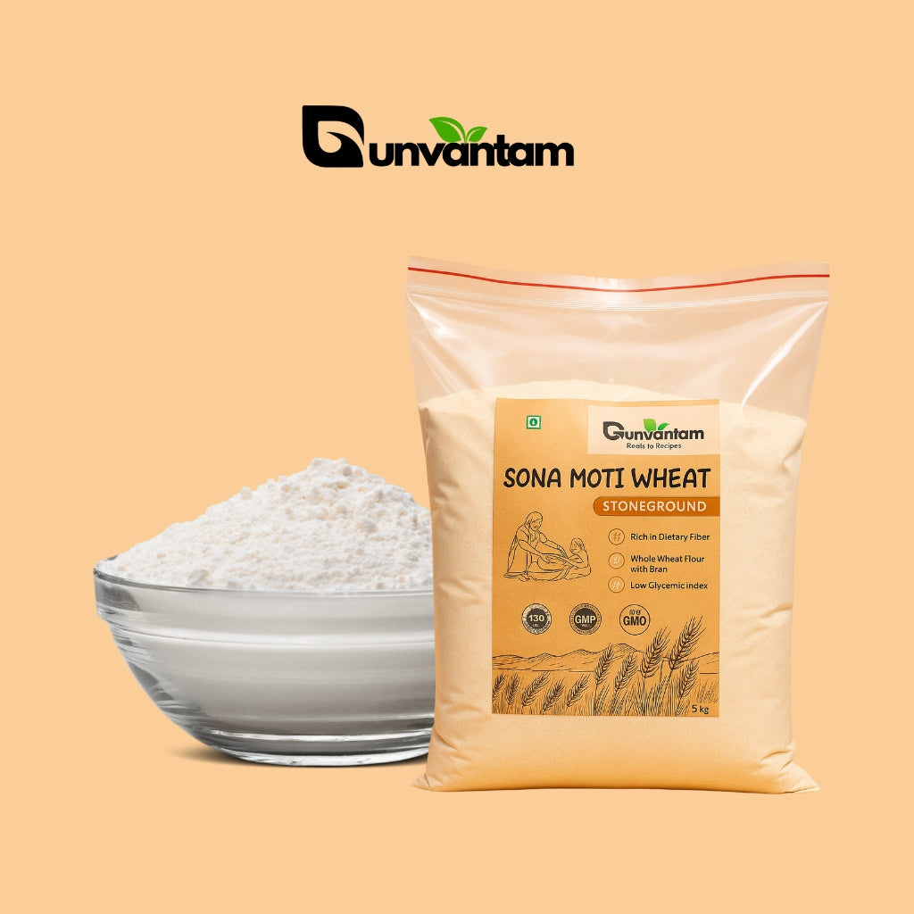 Bring home the richness of ancient Indian grains with Gunvantam Farms’ Sona Moti Wheat Flour – a heritage variety celebrated for its natural sweetness, golden hue, and exceptional softness. Grown using traditional, chemical-free farming methods, this flour is stone-ground slowly to retain every bit of its nutrition and aroma.